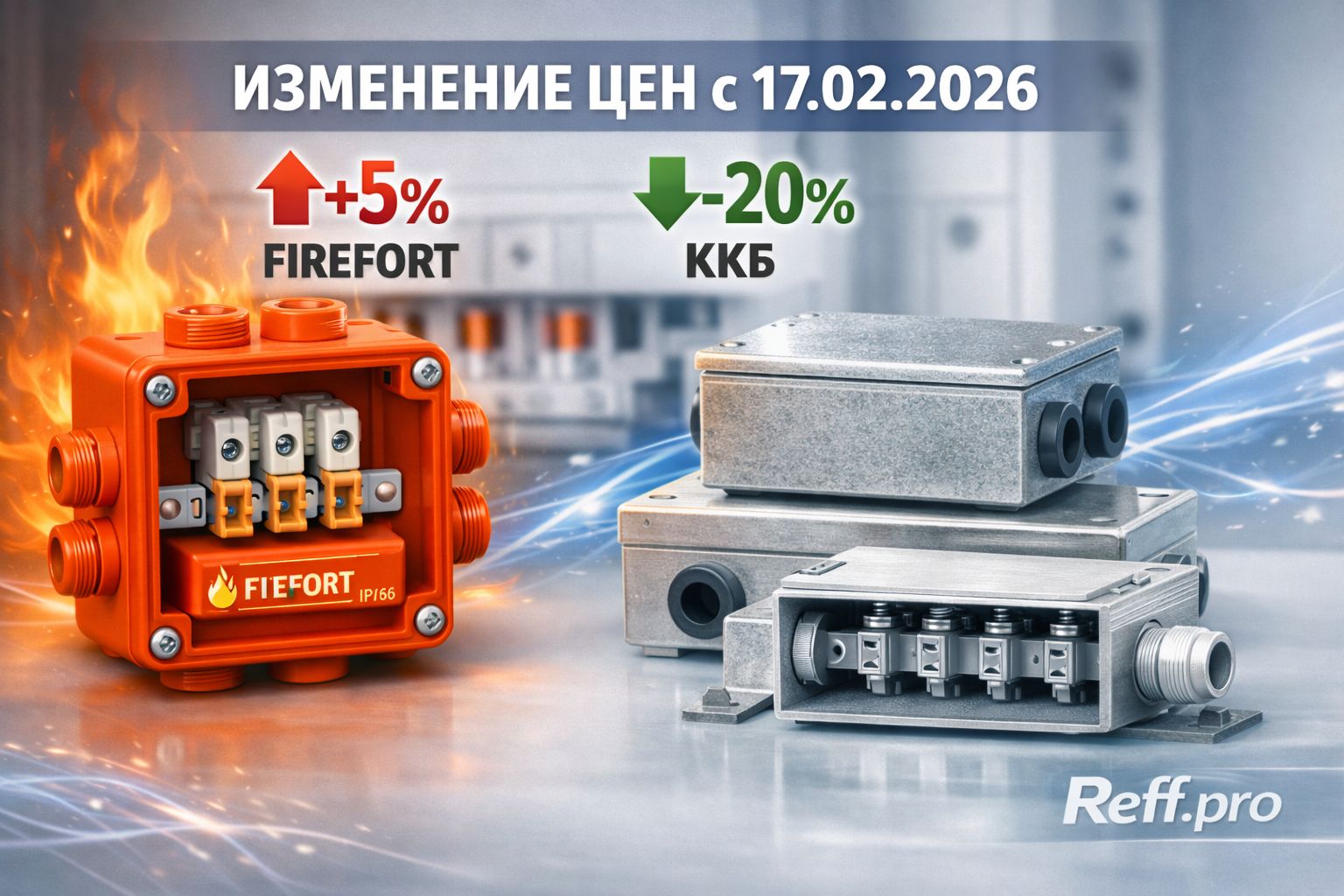 - Огнестойкие распределительные коробки серии FIREFORT — повышение цен на 5%;